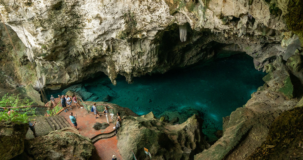 Our tour begins with a visit to «Los Tres Ojos,» a combination of caverns and cenotes, each with a high sulfur content and indescribable beauty.